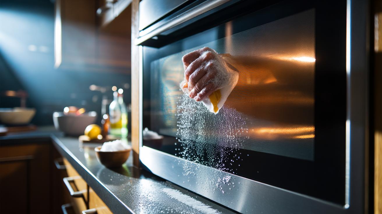 - ⏱️ Under 10 minutes: warm the oven (40–60°C), mist with water, scatter coarse salt, rub in circles then straight strokes, wipe and dry; avoid elements and vents.