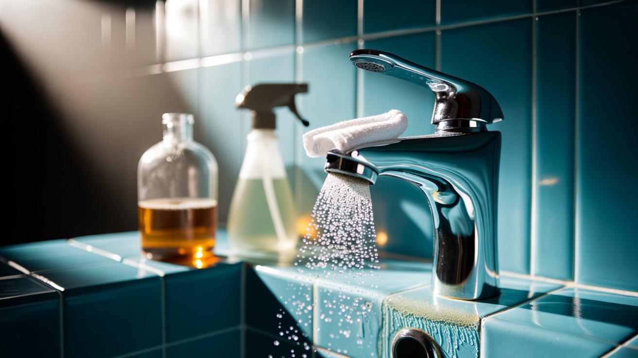 Because vinegar is a weak acid, it works selectively on the mineral layer rather than attacking most common household surfaces. Glass, chrome, and ceramic tolerate it well. That balance—effective on scale, gentle on substrates—is what makes vinegar a dependable first-line cleaner. For thick, long-standing scale, the reaction needs more time, fresh vinegar, or multiple passes. But for everyday haze on shower doors and taps, two focused minutes is often enough to shift the lot.