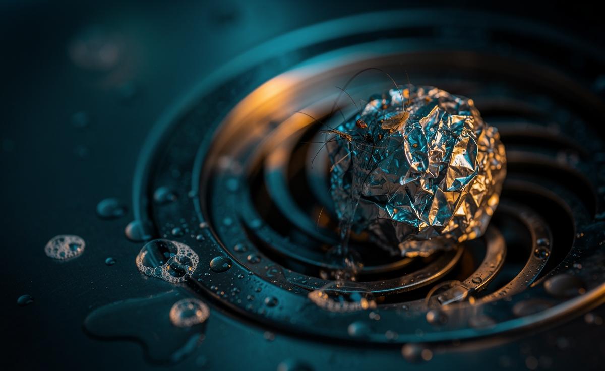 Think of a walnut-sized orb of aluminium foil, crumpled and then loosely teased into a dome. The gaps in the foil become a rough mesh, catching hair, fibres, and tiny food particles that otherwise slide deeper into the trap. It’s a filter, not a stopper. Water continues to pass through the crevices, giving gravity time to separate solids from liquid. The key principle is controlled flow: slow enough to let debris snag, fast enough to avoid standing water. Because the foil is malleable, you can tailor its shape to a bathroom plughole, a kitchen strainer, or the lip of a shower drain.